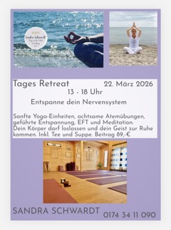 In unserem oft hektischen Alltag steht das Nervensystem dauerhaft unter Spannung. Dieses Tages-Yoga-Retreat lädt dich ein, bewusst innezuhalten, zur Ruhe zu kommen und dein Nervensystem nachhaltig zu entspannen.