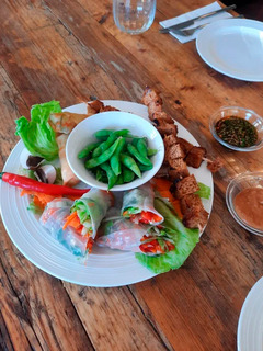 In diesem Kurs kochen wir uns durch diverse asiatische Länder. Wir kombinieren verschiedene asiatische Vorspeisen wie gesalzene Edamame aus Korea, Minifrühlingsrollen aus China, Sommerrollen aus Vietnam und pikante Teriyaki Hähnchen/Seitan-Spieße aus Japan in einer Art Tapas Style mit verschiedenen Dips. Als Hauptgericht essen wir eine leckere japanische Udon-Nudelpfanne mit viel Gemüse und wahlweise Hähnchen oder Tofu. Thailändisches Roti, eine Art gebackener Pfannkuchen mit Kondensmilch oder Schokocreme, rundet unsere kulinarische Reise durch Asien ab.