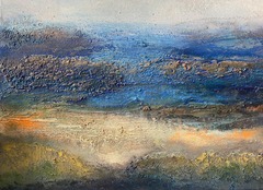 Verwende selbst erstellte Strukturpasten aus Rügener Kreide, Resi Crete und Sand für Deine Strandlandschaft. Bearbeite diese mit Acrylfarbe und lass Lasuren Schicht für Schicht über Dein Bild fließen. Durch die Strukturen entstehen tolle haptische Effekte!